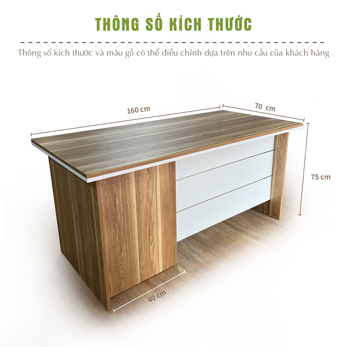 Thông Số Kỹ Thuật Bàn Giám Đốc BGD080 Kích thước Dài 1m6 rộng 70cm cao 75cm