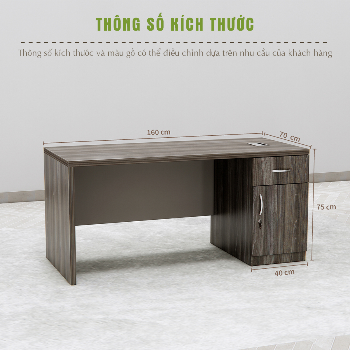 Thông Số Kỹ Thuật Bàn Giám Đốc BGD083 Kích thước 1m6 rộng 70cm cao 75 cm